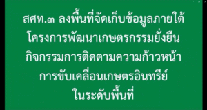 สศท.3 ลงพื้นที่จัดเก็บข้อมูลภายใต้โครงการพัฒนาเกษตรกรรมยั่งยืนกิจกรรมการติดตามความก้าวหน้าการขับเคลื่อนเกาตรอินทรีย์ในระดับพื้นที่