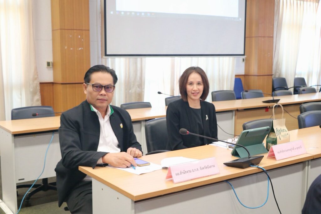 On November 27, 2025, Ms. Pawarisa Sirikul, Acting Director of the Regional Office of Agricultural Economics 3 (ROAE3), assigned Ms. Narinpat Lakapunrat, Senior Professional Level Policy and Planning Analyst of the Agricultural Economic Zone Development Division, to attend the Second Meeting of the Bueng Kan Provincial Agricultural and Cooperatives Development Committee for 2025.