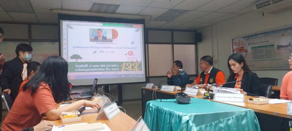 เมื่อวันพฤหัสบดีที่ 16 ตุลาคม 2568 นางสาวปวริศา ศิริกุล รักษาราชการแทน ผู้อำนวยการสำนักงานเศรษฐกิจการเกษตรที่ 3 มอบหมายให้นางสาววิภาวี ศรีทาสร้อย นักวิเคราะห์นโยบายและแผนชำนาญการ ส่วนสารสนเทศการเกษตร เข้าร่วมประชุมคณะกรรมการขับเคลื่อนงานด้านการเกษตรระดับจังหวัดอุดรธานี ครั้งที่ 10/2568 โดยมีนายธิติ โลหะปิยะพรรณ ผู้ตรวจราชการกระทรวงเกษตรและสหกรณ์ เขตตรวจราชการที่ 10 ผู้อำนวยการศูนย์ฯ เป็นประธานการประชุม ณ ห้องประชุมพระพุทธบาทบัวบก ศาลากลางจังหวัดอุดรธานี ชั้น 6 อาคาร 2 ถนนอธิบดี ตำบลหมากแข้ง อำเภอเมือง จังหวัดอุดรธานี มีวัตถุประสงค์ เพื่อขับเคลื่อนการดำเนินการป้องกันและแก้ไขปัญหาภัยพิบัติด้านการเกษตรสอดคล้องกับสถานการณ์ปัจจุบัน รวมถึงเฝ้าระวัง ติดตาม รายงานสถานการณ์ แจ้งเตือน และให้ความช่วยเหลือผู้ประสบภัยด้านการเกษตรอย่างเป็นระบบ รวดเร็ว และมีประสิทธิภาพโดยมีวาระเพื่อทราบ และเพื่อพิจารณา ดังนี้ 1) รายงานสถานการณ์ปัจจุบันด้านอุตุนิยมวิทยา 2) สถานการณ์น้ำ/สถานการณ์ด้านการเกษตร 3) ผลการปลูกพืชฤดูฝน ปี 2568 4)สถานการณ์โรคระบาดพืช/สัตว์น้ำ/สัตว์ 5) รายงานความเสียหายเบื้องต้นจากอุทกภัย 6) การประกาศเขตการให้ความช่วยเหลือผู้ประสบภัยกรณีฉุกเฉิน (ด้านการเกษตร) 7) แผนการเตรียมความพร้อมการป้องกันและบรรเทาสาธารณภัยด้านการเกษตรในช่วงฤดูแล้ง ปี 2568/69 จังหวัดอุดรธานี และร่างแผนการเตรียมความพร้อมการป้องกันและบรรเทาสาธารณภัยด้านการเกษตรในช่วงฤดูแล้ง (เดือนพฤศจิกายน 2568 – เมษายน 2569) ของจังหวัดอุดรธานี โดยมีหัวหน้าส่วนราชการ ผู้แทนหัวหน้าส่วนราชการ คณะกรรมการศูนย์ติดตามและแก้ไขปัญหาภัยพิบัติด้านการเกษตรจังหวัดอุดรธานี และเจ้าหน้าที่ผู้เกี่ยวข้อง เข้าร่วมประชุม โดยพร้อมเพรียงกัน