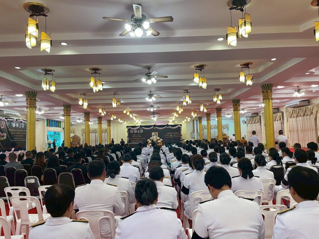 On Thursday, 13 November 2025, at 4:00 p.m., Ms. Pawalisa Sirikul, Acting Director of the Regional Office of Agricultural Economics 3 (ROAE3), assigned Mrs. Athitaya Doungjunta, Plan and Policy Analyst, Senior Professional Level, along with ROAE3 staff, to participate in the merit-making and Buddhist chanting ceremony dedicated to Her Majesty Queen Sirikit, The Queen Mother.
