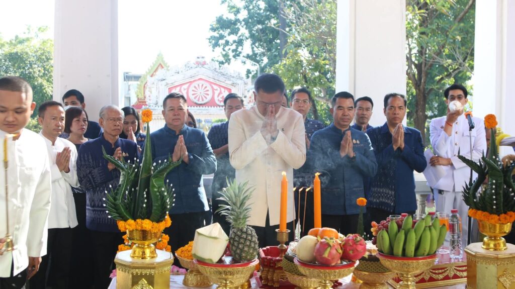 วันที่ 1 ธันวาคม 2568 นางสาวปวริศา ศิริกุล รักษาราชการแทนผู้อำนวยการสำนักงานเศรษฐกิจการเกษตรที่ 3 อุดรธานี เข้าร่วมพิธีเปิดงานทุ่งศรีเมืองจังหวัดอุดรธานี ประจำปี พ.ศ. 2568 “อุดรธานีผ้าหมี่ขิด ร้อยดวงจิต รวมดวงใจ ถวายอาลัย พระพันปีหลวง” ณ บริเวณลานศาลหลักเมืองจังหวัดอุดรธานี โดยมี นายราชันย์ ซุ้นหั้ว ผู้ว่าราชการจังหวัดอุดรธานี พร้อมด้วย นางนงลักษณ์ ซุ้นหั้ว นายกเหล่ากาชาดจังหวัดอุดรธานี หัวหน้าส่วนราชการประจำจังหวัดอุดรธานี และภาคเอกชน ร่วมประกอบพิธีถวายเครื่องสักการะบูชาพระพุทธโพธิ์ทอง ประกอบ พิธีบวงสรวงบูชาดวงพระฤกษ์ศาลหลักเมือง และท้าวเวสสุวรรณ เพื่อความเป็นสิริมงคลและเพื่อให้การจัดงานทุ่งศรีเมืองอุดรธานี ประจำปี 2568 ระหว่างวันที่ 1-12 ธันวาคม 2568 เป็นไปด้วยความราบรื่น On December 1, 2025 Miss Pawalisa Sirikul, Acting Director of the Office of Agricultural Economics Region 3 (OAE 3), Udon Thani, attended the opening ceremony of the 2025 Thung Sri Muang Festival in Udon Thani Province, themed “Udon Thani Mi Khid Fabric, A Hundred Hearts United in Homage to Her Majesty Queen Sirikit, The Queen Mother.” The event took place at the Udon Thani City Pillar Shrine (San Lak Muang). Mr. Rachan Sunn-Hua, Governor of Udon Thani Province, along with Mrs. Nongluk Sunn-Hua, President of the Udon Thani Provincial Red Cross Chapter, heads of provincial government agencies, and representatives from the private sector, participated in the rituals. These included the offering of tributes to the Phra Phut Pho Thong Buddha image, the ceremonial worship of the auspicious time (Bung Suang Bu Cha Duang Phra Roek) at the City Pillar Shrine, and the worship of Thao Wessuwan (Vessavana). These rituals were performed to bring prosperity and ensure the smooth running of the 2025 Udon Thani Thung Sri Muang Festival, which is scheduled from December 1-12, 2025.